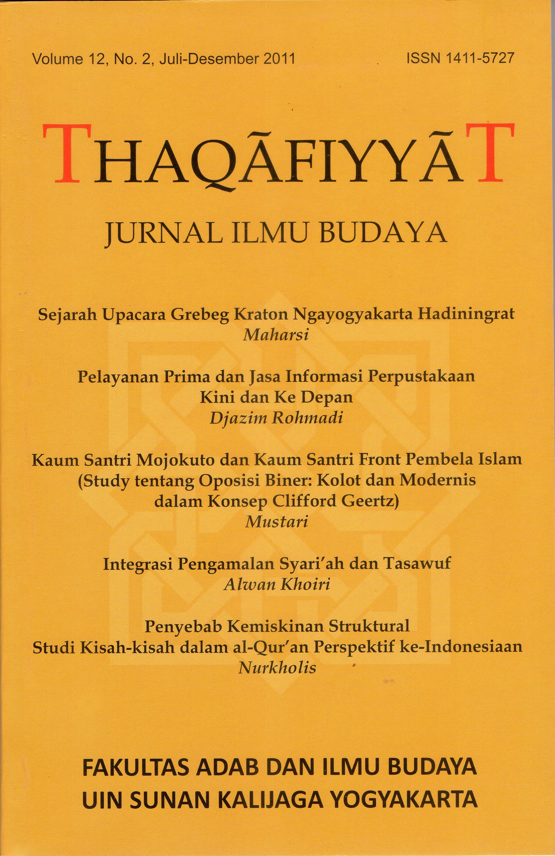 THAQAFIYYAT JURNAL ILMU BUDAYA Volume 12, No. 2